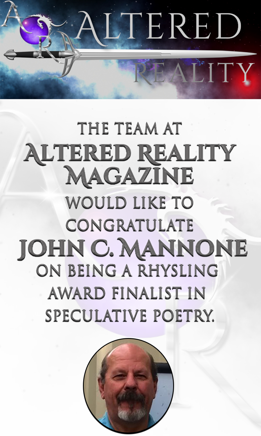 Congratulations to John C. Mannone, a finalist in SFPoetry’s Rhysling Awards!