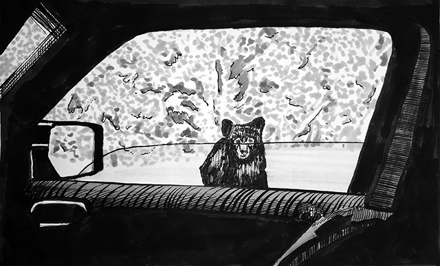 Nathan put one foot on the ground but froze when he saw Celina. “That’s a really big bear…”