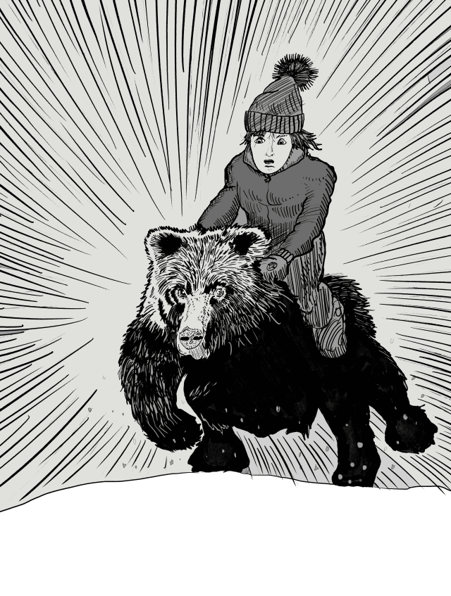 I was winded, but even a winded bear is a formidable opponent, I like to think. But when I turned and saw what I was up against, I almost did that thing in the woods that humans like to say bears do.