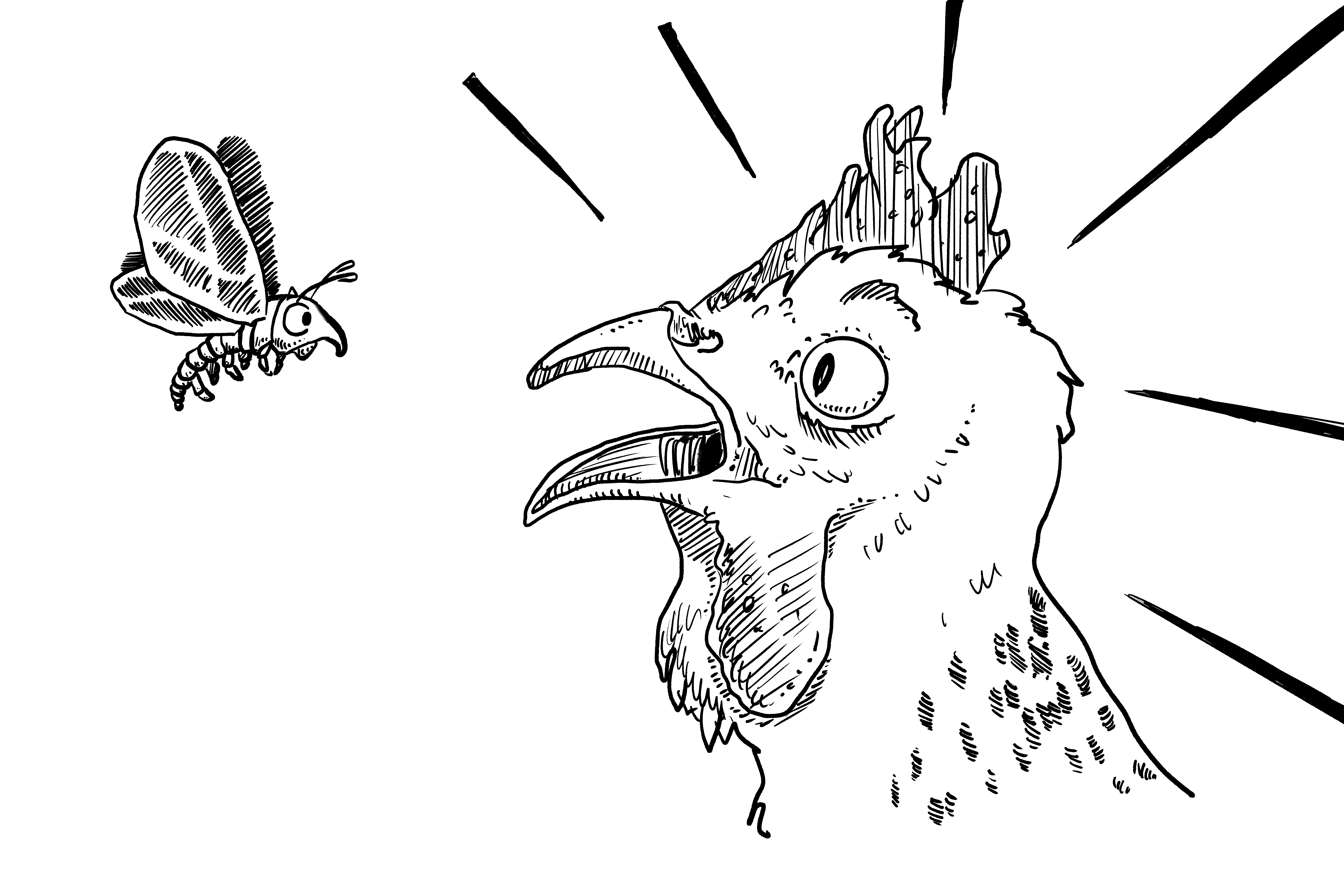 A thrill went through me when I saw Emerson flutter in, making lazy circles in the air. Unlike last time, Emerson was making no effort to hide herself. Was Gretchen trying to be seen? My question was answered when Emerson hovered over Magnitrude’s chicken head and landed on the tip of her beak.