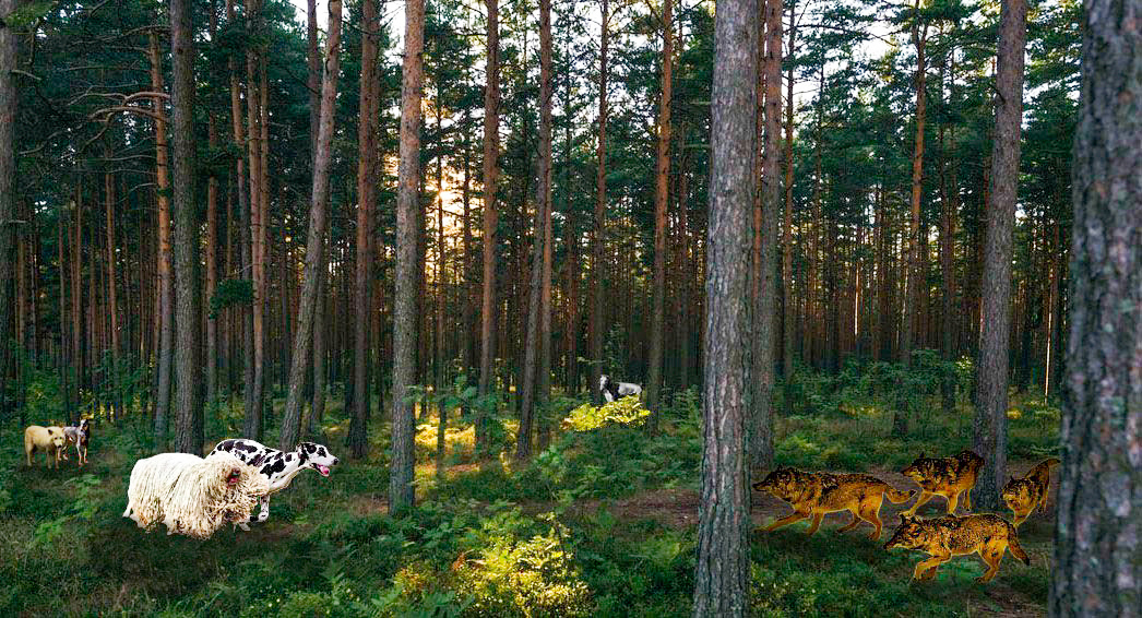 “Look! Some dogs! Get behind those bushes over there,” a burly wolf growled. “Grab ‘em when they pass. We’ll make examples of ‘em.”